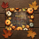 Att uttrycka tacksamhet denna säsong är enkelt med detta vykort, en duk av höstens famn. Gyllene och rödbruna pumpor, tillsammans med ömtåliga höstlöv, inramar ditt meddelande på en rustik trädskiva. "Glad Thanksgiving" visas elegant, redo för din familjs namn eller anpassad hälsning. Anpassa enkelt texten för att dela dina hjärtliga önskningar.