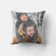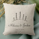 Rustik modern kudd med personligt pars namn och datum, en vinterlig snöig trädscen och ert favoritfoto på baksidan. Perfekt för den första julen tillsammans efter vigseln eller inflyttningen i det nya hemmet.