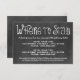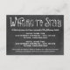 Charming chalkboard-kort i bröllop med "Var ska du stanna" för en avslappnad chic tillfälle har handskrivna stil typsnitt och rullor som har ett vitt kritutseende på en bakgrund som har ett strålande svart brädformat utseende.