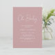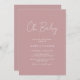 Modern dammiga rosa-babyduschinbjudan till ro med en enkel design med "Oj Baby" i en rustisk stil-manustypografi. Den här elegantens inbjudan med minimalistisk layout är perfekt för en flickdusch.