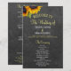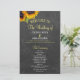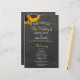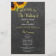 Elegant lantlig rustik bröllopsceremoni och fest budgetvänlig programmall med två vackra gula orange solblommor och ett falskt guld och vitt chic kalligrafiskrift på en mörkgrå kolkrita tavla bakgrund.++++++++++++ Anpassa det med dina detaljer! +++++++++ Lämplig för trädgård rustika landsbygd sommar eller höst bakgård utomhusbröllop.