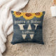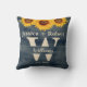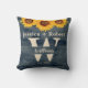 Ge din hem- eller bröllopsdekor en touch av rustik charm och värme med denna personliga solros-kudde. Med en rik marinblå falsk trästruktur som bakgrund, djupt gula solrosor och anpassade parnamn med monogram och bröllopsår, är denna mysiga accentdetalj perfekt för lantliga, countrymässiga eller ladubröllopsmiljöer. Gör en genomtänkt bröllopsgåva, bröllopsduschpresent eller souvenir för din egen stora dag. Designad för att vackert komplettera rustika solrosteman.