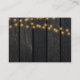 Rustic elegant: Svarshölje för inbjudan till bröllopsinbjudning på en mörk av bruna lingerbakgrund med strängar av ljus med skinkl. +++++++ Matchningsstationär i svit.
