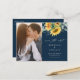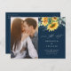 Ett rustikt höstblommigt foto bröllop spara datum kort med akvarell solros och eukalyptus bukett. Klicka på redigeringsknappen för att anpassa denna design.