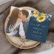 En rustik höstblomma foto bröllop spara datum med akvarell solros och eukalyptus bukett. Klicka på redigeringsknappen för att anpassa denna design.