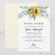 Elegant och rustik bröllopsinbjudan med akvarell solros eukalyptus grönska med script kalligrafi och modern typsnitt.