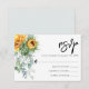 Rustik RSVP-kort med solros, eukalyptus och grönska.