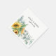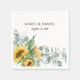 Rustika och eleganta akvarellsolrosor och eukalyptus på vita pappersservetter.