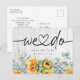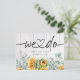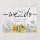 Rustik akvarell solros och eukalyptus på träsnitt vigsel kortsvarning som säger "vi gör" med ansluten hjärta. Personlig information på baksidan.