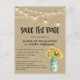 Rustika Solrosor i Murade Glasburkar Spara Datum - Landlig, bondgårdsinspirerad typografi på en rustik kraftbakgrund med vintage-strängar av lampor som hänger ovanför. En lantlig murad glasburk med ljusa akvarellsolrosor, perfekt för bruden som är intresserad av ett rustikt tema. Postkortet är en del av en samling. Du kan enkelt göra detta rustika postkort unikt genom att använda vårt designverktyg.
