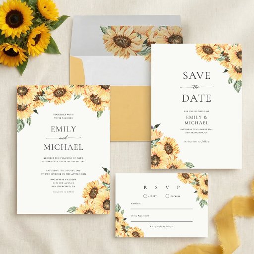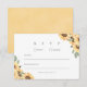 Fyll i din rustika bröllops brevpappersserie med detta solros-kort för svar. Designen har gula akvarellblommor i par med färska gröna blad. Det är det perfekta svars kortet för par som planerar en utomhus ceremoni på sen sommaren, en höstfirande eller ett country chic botaniskt tema.