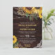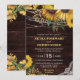 Rustik solros- och strängljusdesign på en mörkbrun träbakgrund med vit spets