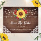 Dessa spara datum-kort har en rustik solros- och röd ros akvarellblommig design med spets, strängljus och trädgårdsbakgrund. De är en del av en samling som inkluderar ett komplett utbud av matchande bröllopsinbjudningar och brevpapper. Besök vår butik för att se hela utbudet av artiklar som du kan anpassa för ditt bröllop.
