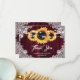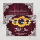 Rustik Solros Trä Blommig Spets Burgunder Bröllop Tack Kort