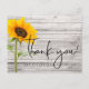 Rustik trä med en enda solros gör detta tackkort för bröllopsfest enkelt. På andra sidan finns ditt personliga meddelande eller ta bort texten för ett handskrivet meddelande.
