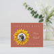 Rustik solrosfoto bröllop spara datum meddelande vykort