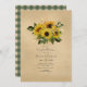 Höst - Höstinbjudan till rustic barn landsbygd bröllopsfest för par med solrosor och ett grönt rutigt bordduk grafik på baksidan.