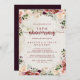 Denna rustika sommarblommiga 50-årsjubileum för bröllop-inbjudan är perfekt för ett enkelt evenemang. Designen har burgunderfärgade, rosa och skära akvarellblommor med gröna blad på en brunaktig bakgrund.