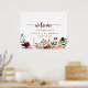 Denna rustika sommarblommiga välkomstskylt för engagemangsfest är perfekt för en modern engagemangsfirande. Designen har burgunder, rosa och rosafärgade akvarellblommor med gröna blad på en brunaktig bakgrund.