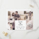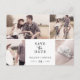 Den här rotationsskript 4-fotomallen sparar datumvykortet som perfekt för ett landsbyggsbröllop. Den enkla och moderna svarta och vita designen har en unik liten, handskriven kalligrafiskrift med en contemporary minimalistisk boho stil. Anpassade i alla färg. Behålla designen minimal och förenklad, eller anpassa den genom att lägga till egna bilder och teckningar.
