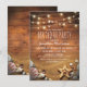 Födelsedagsinbjudningar för vuxna med strandtema med en rustik trädriven bakgrund, gnistrande sladdbelysning, sandstrand med sjöstjärna och snigelskal. Malltexten, typsnittsstil och färg kan enkelt anpassas för att passa dina behov.