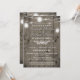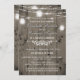 Trendig, rustiskt virke och Mason burk ljus par duschinbjudningar för rustiskt landsbyggsbröllop stilar-Vintage-ladukplakat med bakgrunden i rökt, grått taupe föråldrad effekt. Över toppen är rustik land mason burk och romantisk sträng ljus. Personlig med parets namn i koordinering, palest grått med skuggeffekt. En elegant rulla gräns separerar introduktionen och namn från detaljerna i bröllop. Baksidan har samma rustiska träbakgrund som land ljus.Anmärkning: Alla bilder skrivs ut. Använda knappen Anpassa om du vill ändra något - stilar, storlek, färger eller placering. inbjudningskort för duschdusch i Perfekt vid land-kulisserna för vintage bröllop-teman, ladugården bröllop stilar, rustiska bröllop par, landsbyggsbröllop, sommar bröllop förlovningsfest, avslappnad utomhus bröllop eller land westernare bröllop. Vi har samordnande, rustiska trävaror och bröllop i vår Zazzle.com/angela65-butik. Enkel, elegant och rustik förlovning inbjudningskort att vara personlig med dina egna uppgifter.