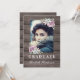 Rustika inbjudningar till examensfest med en rustik trädriftsbakgrund, ett foto av den examinerade, en suckulent hörndisplay och en modern textmall för examen.