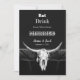 Western landsbygd cowboy ät drick gift rolig svart och vit bröllopsannons. Rustik tjur ko skalle. Använd lite humor med dessa söta, roliga lantgårdsstil inbjudningar. Ät, Drick, för vi gifter oss kan anpassas. Gammal vilda västern vintage antik stil design. Cool trendig gårdsdjur. Anpassa den vita skriften. Bild upphovsrätt Marg Seregelyi Photography.
