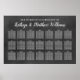 Enkelt elegant bröllops platsindelning affischdesign med en monogram av brudens och brudgummens namn och anpassad malltext för tjugoen (21) bord med gästnamn. Rustik svart kritskiva och vit färgskala kan anpassas för att passa dina färger.