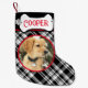 Rustik svartvit plaid med gräs cone liten julstrumpa