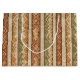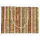 Varm geometrisk randmönstrad presentpåse med stammestil-inspirerade diamanter, sicksackmönster och texturerade vertikala band i jordnära bruna, terrakotta-, tan-, beige- och kolgrå toner. En mysig boho-design som är idealisk för älskare av sydvästlig inredning, fans av rustik stil och alla som dras till jordnära, hantverksmässiga estetiker.