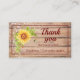 Detta moderna och snyggt Tack affärskort är dekorerat med en gult av vattenfärg solros, ljus och ett bi på en rustik brunträ-/träbakgrund. Idealisk för alla små företag att tacka våra kunder för deras inköp och support. Anpassa det med ditt eget meddelande och Business namn, lägg sedan till e-post och webben adress och all annan information på baksidan.