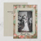 Vackert platt stil tackkort för bröllopsfoto med grafik i form av en rustik trädgårdsmiljö med korallrosa blommor. En rustik dekorativ ram som ser ut som hantverks papper runt ett anpassat bröllopsfoto. Lägg till er egen bild och ändra texten för ett fantastisk tackkort för bröllopsfoto. Anpassa fram- och baksidan efter dina behov. Matchande bröllopsprodukter finns tillgängliga.