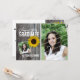 Landlig rustik stil examensinbjudan med gammal lada trä och en ljusgul solros. Personifiera med tre av dina favoritbilder på studenten.