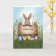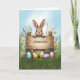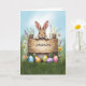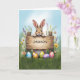 Rustik teckenbunny i gräs med Påskägg Kort
