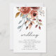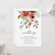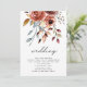 Rustik terrakotta blommor Skript Bröllopsinbjudan. Lägg till din QR-kod på din bröllopswebbplats på baksidan gör detta till ett bekvämt alternativ för dina gäster att svara och se alla detaljer utan att behöva separata svarskort och informationskort. En elegant informell stil för rubriken under vackra akvarellblommor. Personalisera enkelt med din information.