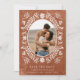 Fira din kärlek med detta rustika terrakotta bröllop Spara Datumet-kort med en invecklad blommig design. Perfekt för ett bohoinspirerat bröllop. Matchande artiklar i vår butik Cava Party Designs.