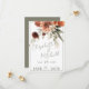 Detta moderna men ändå rustika bröllopskort med räddningsdatum-design har en toppbukett med persikoblommor, rost, terrakotta, bruna och vita blommor. Bakgrunden är vit med en tunn salvia grön ram; baksidan är en mjuk salvia grön. Denna design är en del av Rustic Terracotta Rust Flowers Wedding Suite-kort som skapats av Simply Farmhouse Press.