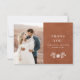 Dela din tacksamhet med det rustika terrakotta-fototackkortet, med varma jordnära toner och ett personligt foto. Perfekt för bröllop, brudshower eller någon speciell tillställning! Perfekt för ett bohoinspirerat bröllop. Matchande artiklar i vår butik Cava Party Designs.