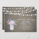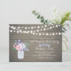Fira din speciella dag med denna stilrena bröllopsjubileums inbjudan. Denna design har mason jar och blomsterbukett på en rustik trähuvudbakgrund.