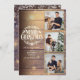 En stilren rustik 3-foto collage semesterdesign för dig att anpassa med dina favoritbilder i gyllene ramar, meddelande, namn och år på en rustik träbakgrund. Baksidan har fallande snöflingor på en matchande rustik träpanel bakgrund. Designad av Thisisnotme©
