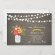 Fira din speciella dag med denna stilrena överrasknings inbjudan till jubileum. Denna design har strängljus, höstfärgat blomsterarrangemang med en masonburk på en rustik trähylla. Du kan anpassa texten till valfri ålder eller händelse. Lägg till parets initialer i hjärtform på masonburkens grafik.