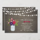 Fira din speciella dag med denna stilrena överraskningsinbjudan till jubileum. Denna design har strängljus, höstfärgad blomsterbukett (röd och lila) med en masonjär på en rustik trähylla. Du kan anpassa texten till valfri ålder eller händelse. Lägg till parets initialer på hjärtformen på masonjär-grafiken.