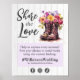 Rustik Trä Blommig Boot Bröllop Hashtag Foto Skylt