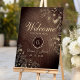 Välkommen gäster till er vintage country bröllop med vår eleganta rustika trä välkomstaffisch. Prydd med invecklad förgylld boho guld blommig spets och personifierad med brudens och brudgummens monogram, sätter den tonen för en charmerande firande mitt i naturens skönhet.