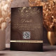Bjud in gästerna till er charmiga vintage-lantbröllop med vårt eleganta detaljer-kort. Tillverkat av rustikt trä, prytt med förgylld boho-guld blomsterbroderi och med en diskret QR-kod för enkel åtkomst till mer information på vår webbplats. Det är den perfekta kombinationen av tidlös romantik och modern bekvämlighet.