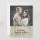 Stilfull rustik bröllopsinbjudan för att spara datumet, med anpassad bild längst upp på kortet och en ljus trädesign längst ned på kortet och på baksidan. Grafikskrift i mintgrön färg med texten spara datumet. Anpassa med din egen bild och text. Vacker väg att tillkännage ditt kommande bröllop.