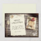Rustik trä gammal pappersskrift God jul semesterkort. En rustik scen med trä, grönska och gammalt papper med en skrift på papperet - anpassa texten med din text.