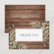 Med sköra akvarellblad på en rustik träbakgrund som ramar in ditt tackmeddelande i en elegant text. Du kan anpassa med ditt eget tackmeddelande på baksidan. Designad av Thisisnotme©
