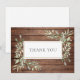 Med rustik trä och ömtåliga vattenfärg gröna blad som ramar in ditt tackmeddelande i en elegant text. Du kan anpassa med ditt eget tackmeddelande på baksidan eller om du hellre vill lägga till ditt eget handskrivna meddelande, ta bort texten. Ett perfekt sätt att säga tack! Designad av Thisisnotme